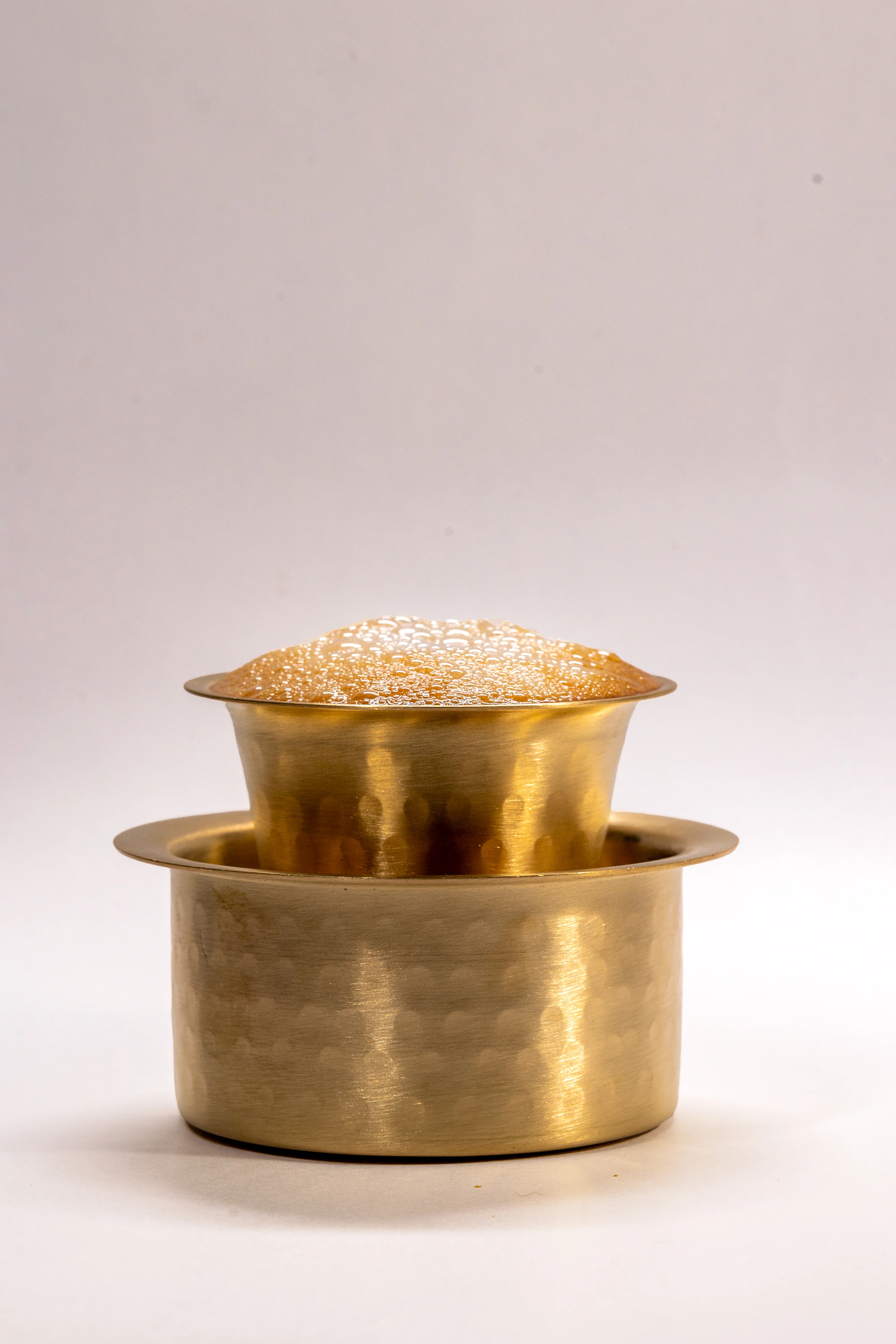 Just as the right wine glass enhances your wine experience, the Dabara enhances the overall South Indian Filter Kaapi experience. Here, we have the finest quality Brass Dabara set, embellished with a hammered finish that was particularly popular during the Arts & Crafts period and elegantly finished in 'Brushed Matt' to deliver the finest South Indian Filter Coffee Experience.